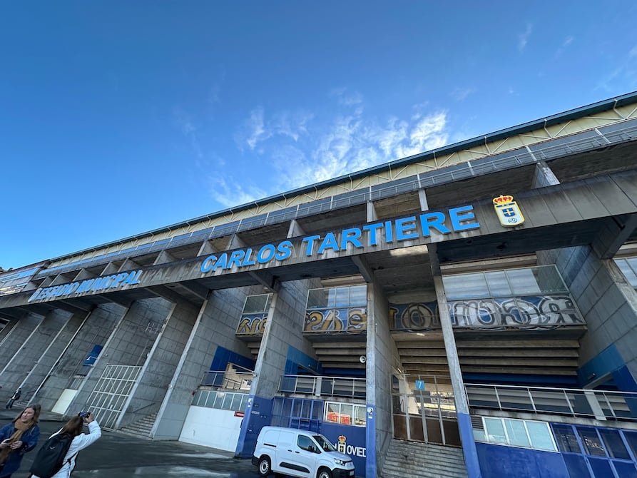 En el ingreso al estadio Carlos Tartiere se observaron las decoraciones con fotos que dieron forma a la historia de este club, que fue el primero de Asturias en ascender a la primera división del fútbol español.