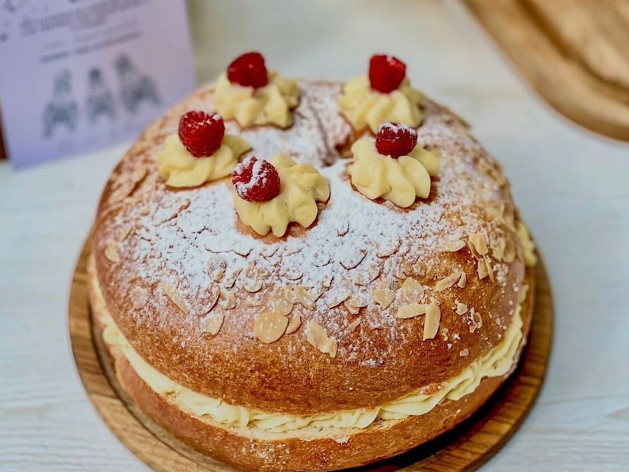 El roscón de palta tiene relleno de crema diplomática (chantilly y pastelera) y chocolate Dubái.