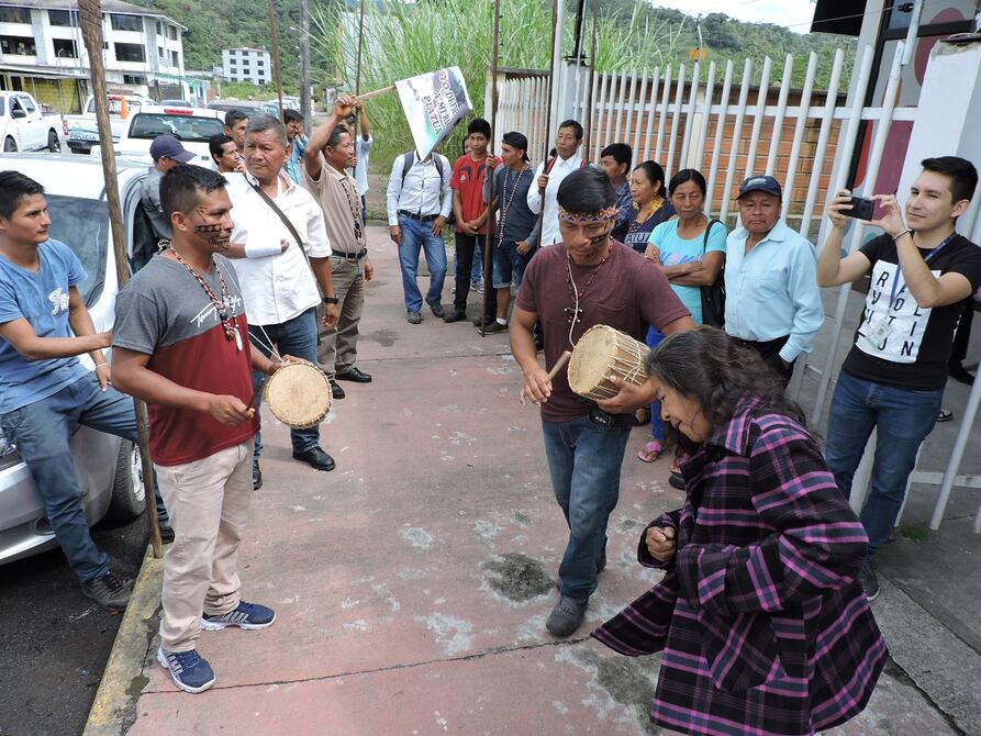 Con danzas tradicionales y portando lanzas, miembros de las comunidades del cantón Santa Clara, en la provincia de Pastaza, celebraron la decisión de los jueces de la sala única de la Corte Provincial de Justicia de suspender los trabajos de la central hidroeléctrica en la zona.
